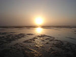 zon komt op door zeedamp
